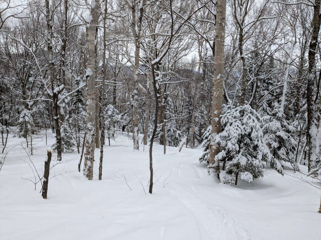 Still, I was able to find pockets of untracked and lightly tracked snow in the off-map woods. It just wasn’t enough to earn the “powder day” tag. I was rather surprised that Jay had reported a 48-hour total of 12 inches. But that did include two days of skier traffic.