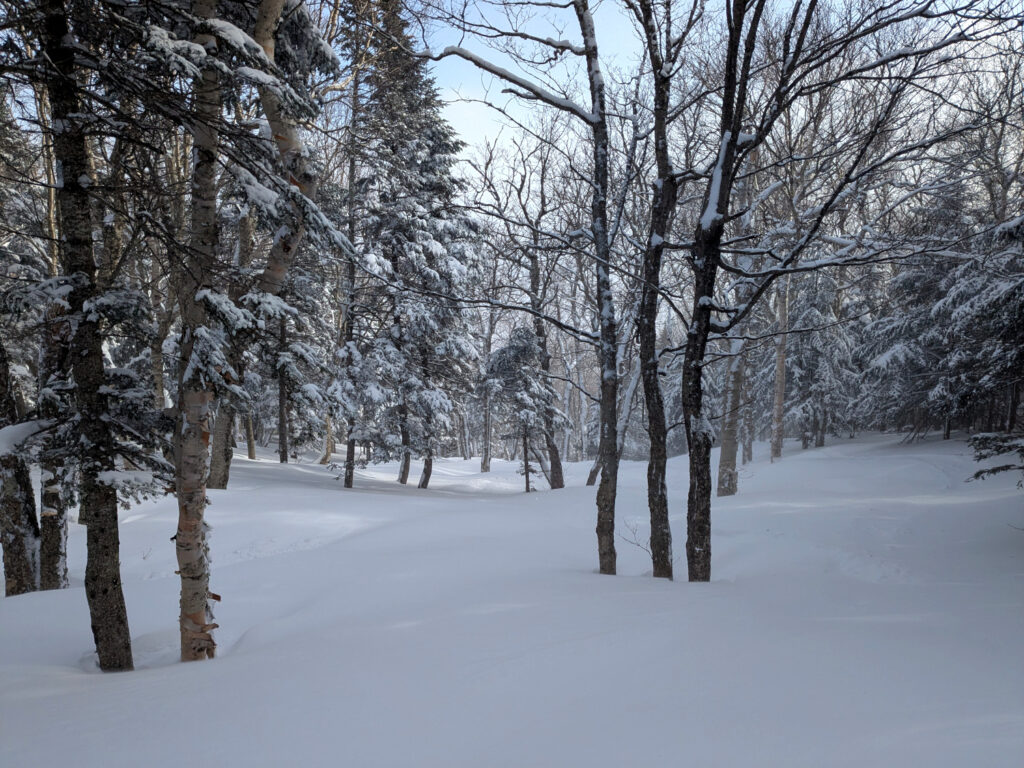 Sure enough, Jay reported 12-14″ and Mad River reported 18-20″ (and MRG’s updated report even mentions “yeah the lines may have been long…”). I enjoyed an easier and shorter drive, no stress on the access road, and no crowds whatsoever at Jay. Definitely the right choice.