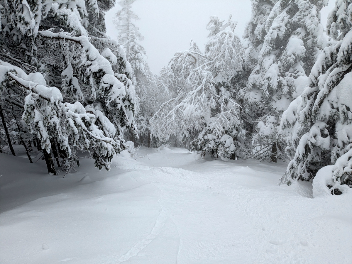 I went to the Jet and into the woods like it was mid-season. Absolutely unreal. Most of the Stateside trees had a well-packed base below the powder. The lower mountain is still a bit thin. Unfortunately, due to snowmaking, a rope was up preventing access to Derick, Timbuk, etc.