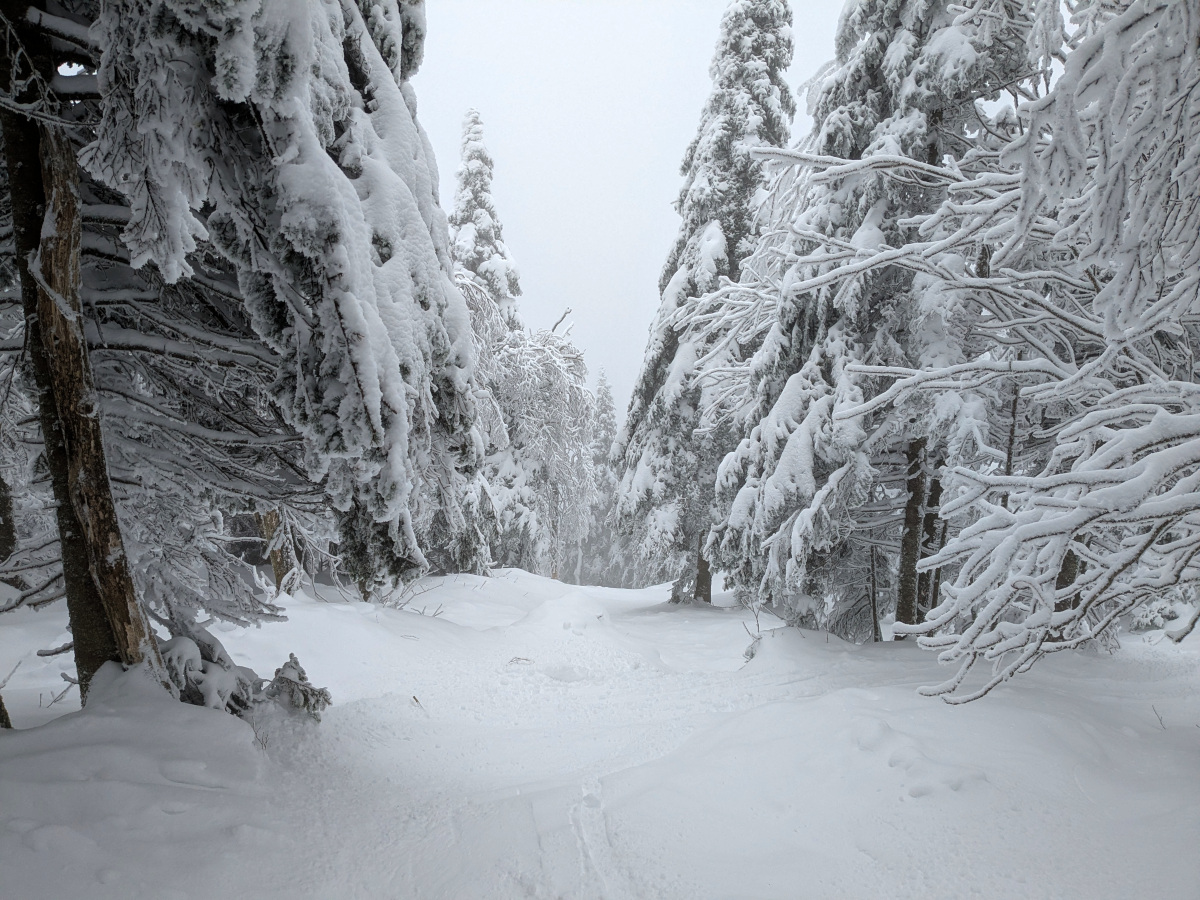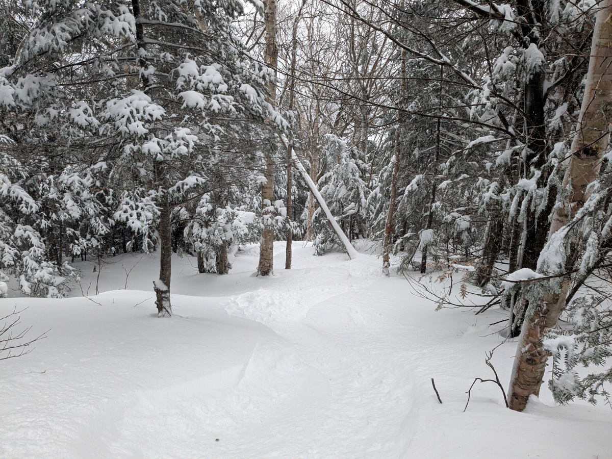 Off map woods in the Goat area had not been packed down yet, so caution was required. Despite said caution, a snow covered drainage still ate my skis. There was more than enough untracked on the trails, so I opted to keep it on the trails after eating it in the drainage.